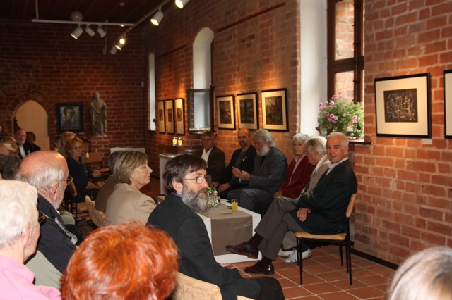 Freunde und Weggefährten von Kurt Henschel liessen Erinnerungen lebendig werden. In kurzweiliger Atmosphäre erzählten Arne Könnecke, Rainer Döring, Hans-Peter Jakobson (Moderation), Jutta Zimmer-Moll, Herbert Stertz und Gotthard Voß Geschichten, Anekdoten und Begebenheiten vom Studienkamerad, Maler, Zeichenlehrer, Denkmalpfleger, Museumsleiter, Familienmenschen, Künstler, Galeristen, Musiker.